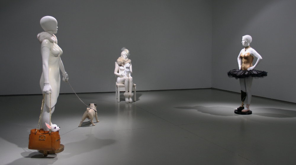 Menneet näyttelyt – 2017 GalleriaKONE | Verkatehdas | Hämeenlinna Marianne Siri Dog-Eat-Dog World 30.9.-24.10.2017 Näyttelykokonaisuus GalleriaKONEessa koostuu kipsisistä ja keraamisista veistoksista, jotka esittävät naisia ja eri rotuisia koiria. Teoksessa Madonna ja pentu naisen sylissä oleva shar pein pentu näyttää melkein asukokonaisuuteen sopivalta muotisomisteelta. Bitch – teoksen nainen ulkoittaa mopsia ja kantaa chihuahuaansa käsilaukussa. Shar pei …