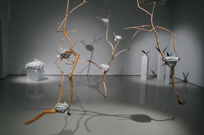 Menneet näyttelyt – 2011 GalleriaKONE | Verkatehdas | Hämeenlinna Katja Antonoff Tuulessa ihmisen pesä 19.2.-15.3.2011 ”Ihmisen pesä on rakennettu sähköjohdoista puun Tuulessa ihmisen pesä -installaatio koostuu puun oksista ja oksille kiinnitetyistä pesistä. Viime kesänä rakensin samannimisen ympäristötaideteoksen Helsinkiin Kivinokan ympäristötaidenäyttelyyn. Tässä näyttelyssä oleva installaatio on variaatio aikaisemmasta teoksesta. Pesän tarkoitus on tarjota suojaa ja turvaa, …